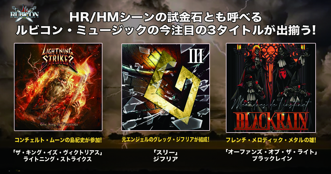2026.02.04 【HR/HMシーン注目3タイトル!】HR/HMシーンの試金石とも呼べるルビコン・ミュージックの今注目の3タイトルが出揃う! ※タイトルをクリックしていただくと当サイトオンラインショップに移行しご購入できます。 コンチェルト・ムーンの島紀史が参加!「ザ・キング・イズ・ヴィクトリアス/ライトニング・ストライク」 元エンジェルのグレッグ・ジフリアが […]
